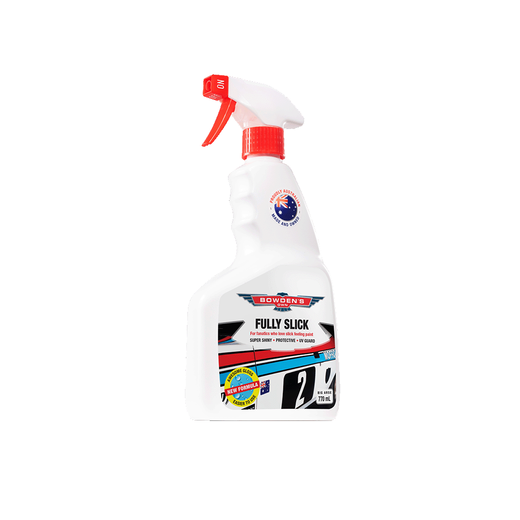 A protective detailing spray that leaves a slick, glossy finish Bowden's Own Fully Slick has always provided an exceptional finish and protection, but Bowden's has stepped it up another level with their latest upgraded formula.