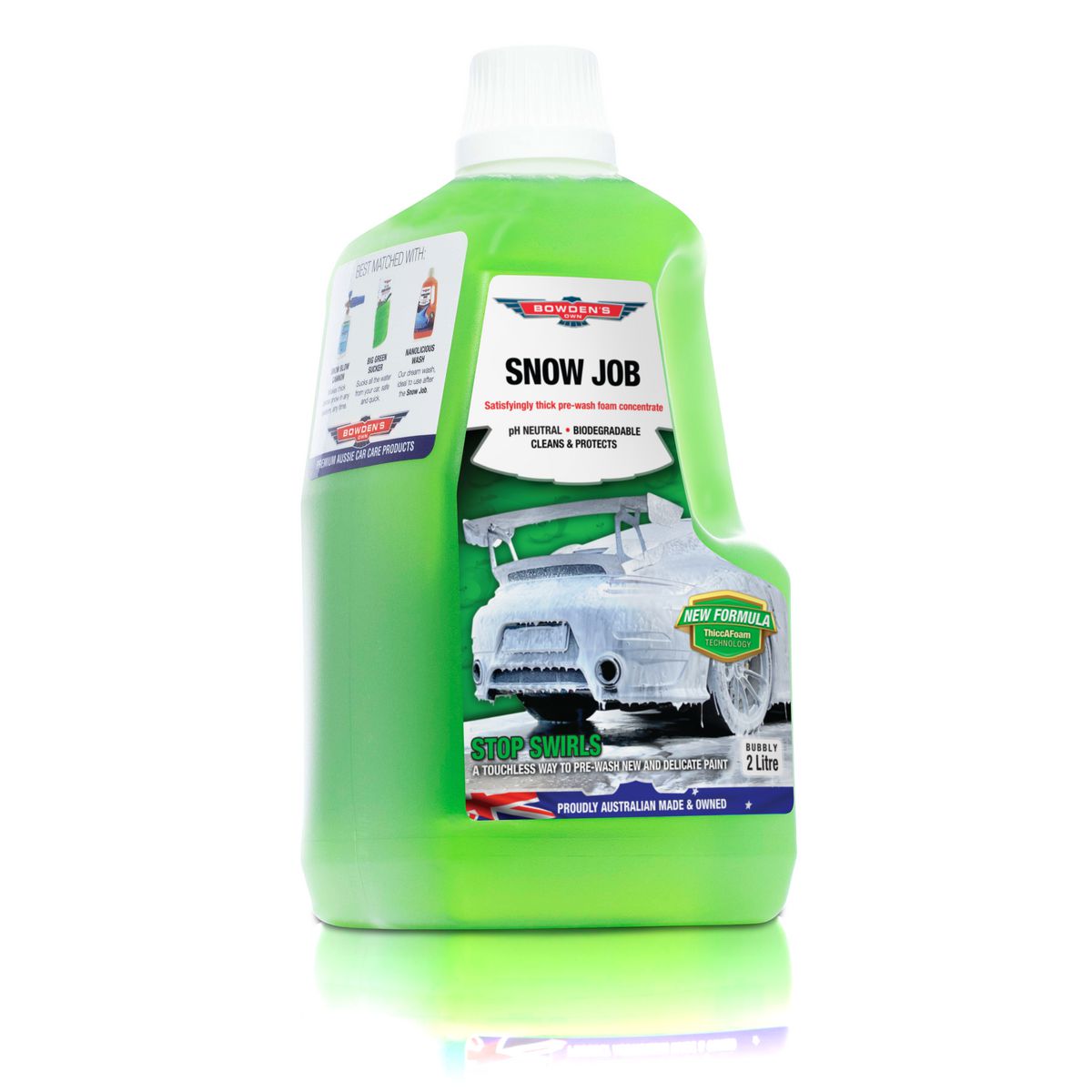 With Bowden's Own Snow Job pre-wash foam, achieve the white coverage. Snow Job is a powerful, deep-cleaning pre-wash foam that has been developed for routine use on all 4WDs, both new and old, even those with delicate paint finishes. So that you are no longer rubbing dirt and grit into your paint while washing your 4WD, cover the painted surface with a thick layer of long-lasting foam to loosen and dissolve heavy pollutants, oils, and grit. When used in conjunction with the Bowden's Own Snow Blow Cannon, the coverage it provides will significantly reduce the likelihood of your 4WD receiving any swirls or scratches during car washing.