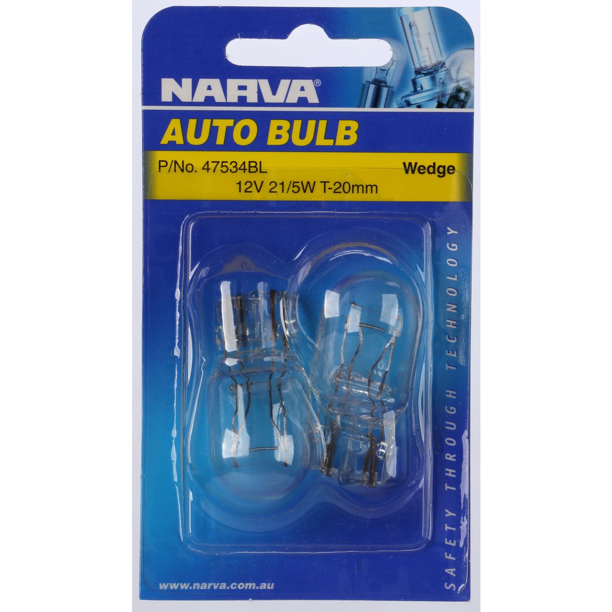 Narva T-20mm Wedge Globe 12V 21/5W W3 X 16Q Double Blister - 47534BL