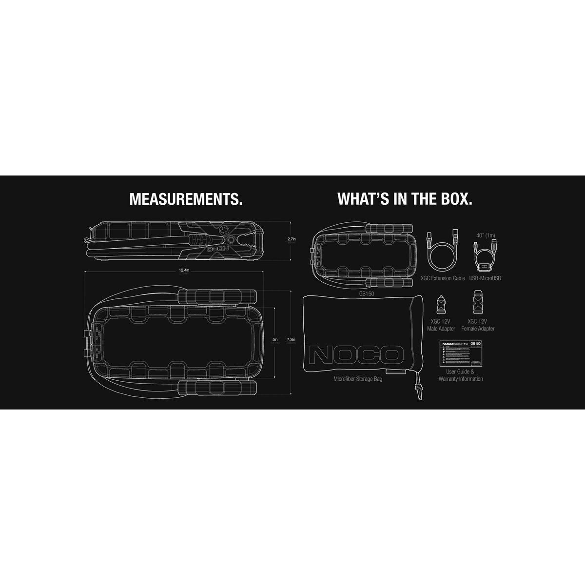 The GB150 is a portable lithium-ion battery jump starter pack with 3,000 amps of power that can jump start a dead battery in seconds. It has unique safety technology that provides spark-proof connections and reverse polarity protection, making it safe and simple to use for everyone. It's a powerful battery booster that also functions as a portable power source for charging USB devices such as smartphones and tablets, as well as powering 12-volt items such as tyre inflators, power inverters, and more. Designed for use with a 4WDs, boat, RV, truck, and other vehicles that have petrol engines up to 9.0L and diesel engines up to 7.0L.