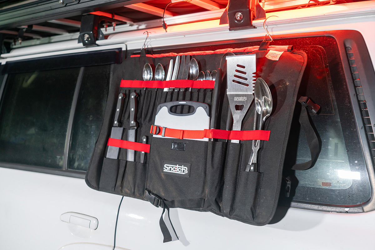 With the Snatch Camp Cutlery Set, you'll have the right tools to be a gourmet Chef just like Shauno, from slicing and dicing to flipping and serving. The included roll-out bag keeps everything organized and within easy reach, so you can focus on cooking delicious gourmet meals while camping.
