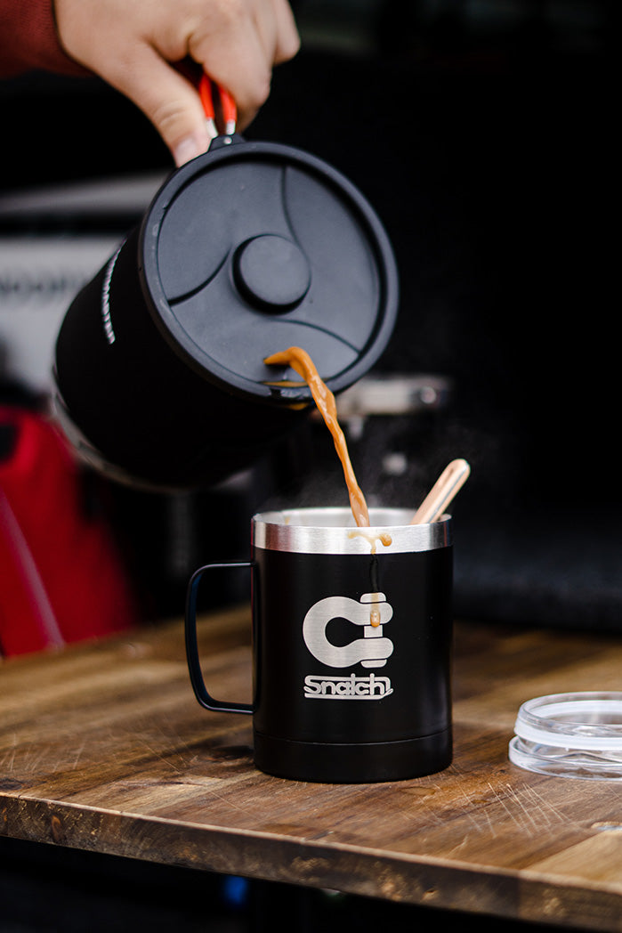 Keep your morning Coffee hot at camp or while you hit the tracks with our New Snatch Thermal Mugs! These Thermal Mugs are made with a Dual-Wall stainless steel construction for ultimate insulation and are powder-coated in either Black or Red, with Snatch branding bold and proud.