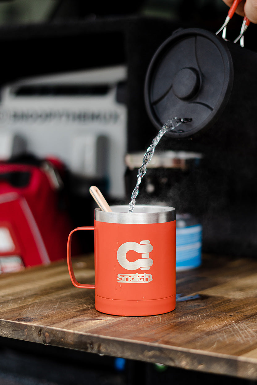Keep your morning Coffee hot at camp or while you hit the tracks with our New Snatch Thermal Mugs! These Thermal Mugs are made with a Dual-Wall stainless steel construction for ultimate insulation and are powder-coated in either Black or Red, with Snatch branding bold and proud.