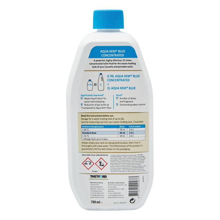 - Concentrated toilet fluid for waste holding tank. Significantly improved waste liquefication for easier tank emptying. Significantly improved reduction of gas build up. Outstanding odour control. Convenient small bottle. Dose 60ml per 20L waste holding tank capacity and add 2 - 3 L of water. lasts up to 5 days
