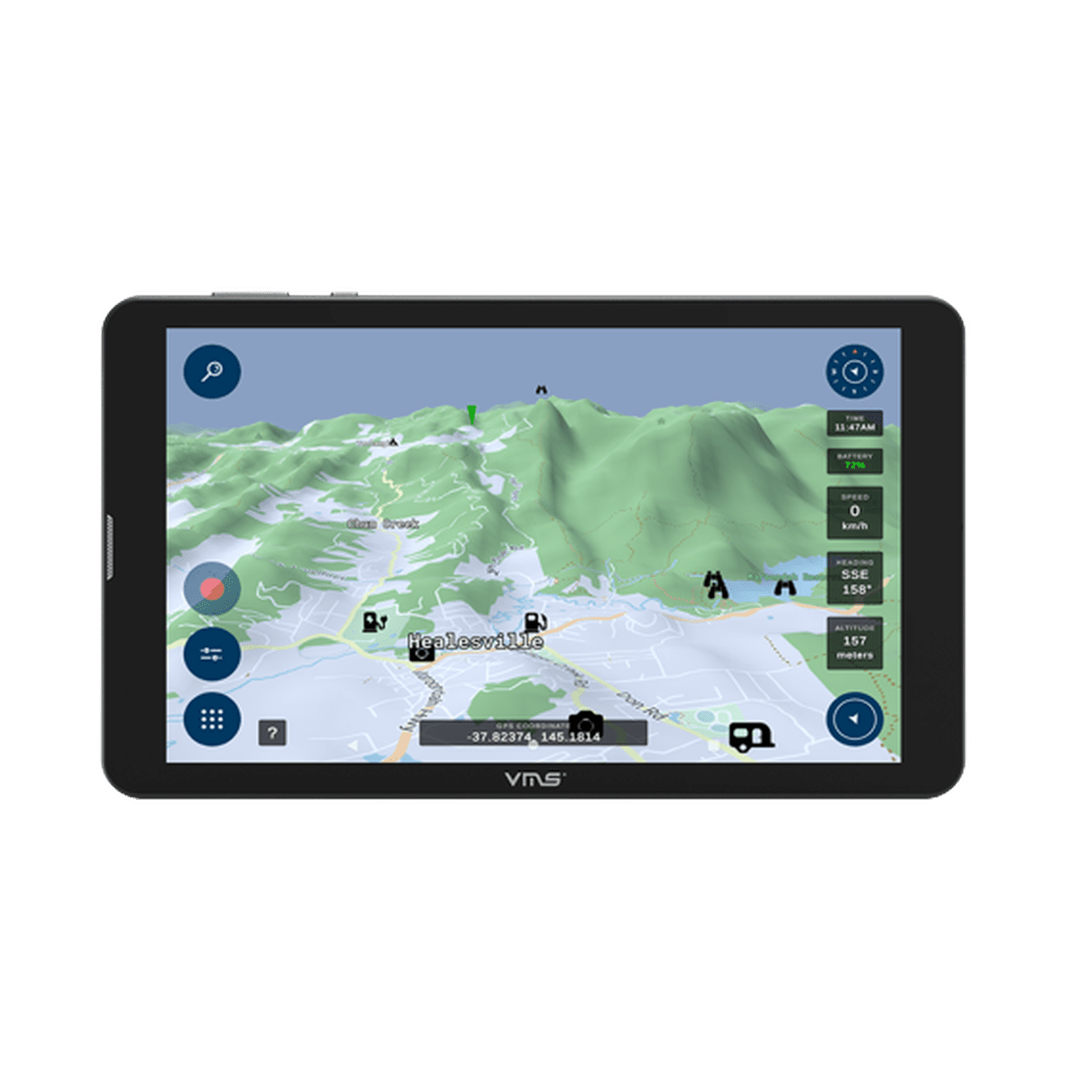 The new VMS 3DX comes pre-loaded with 3D vector maps covering every state and territory in Australia. What’s cool about the new 3DX is it comes pre-loaded with CAMPS11 giving you access to over 5000 locations of free or low coast campsites, RV Park, National Parks, State Forests, Farm Stays, Pub Stays, Dump points and more.