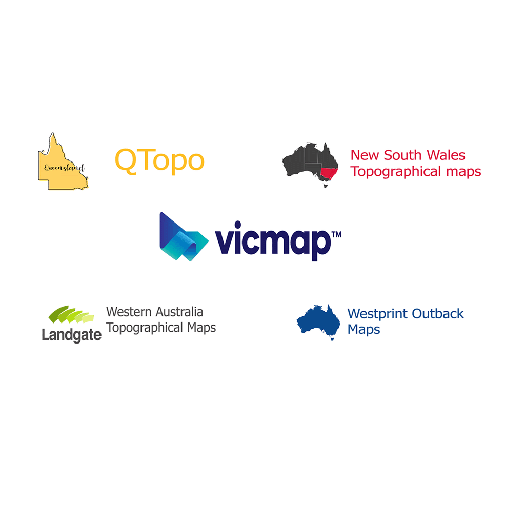 This package includes topographical maps for states such as Victoria, Queensland, New South Wales, Western Australia along with Westprint map which which have state wide coverage of 4wd tracks, fire trails and land features that can be overlayed on the 3D Vector maps .**